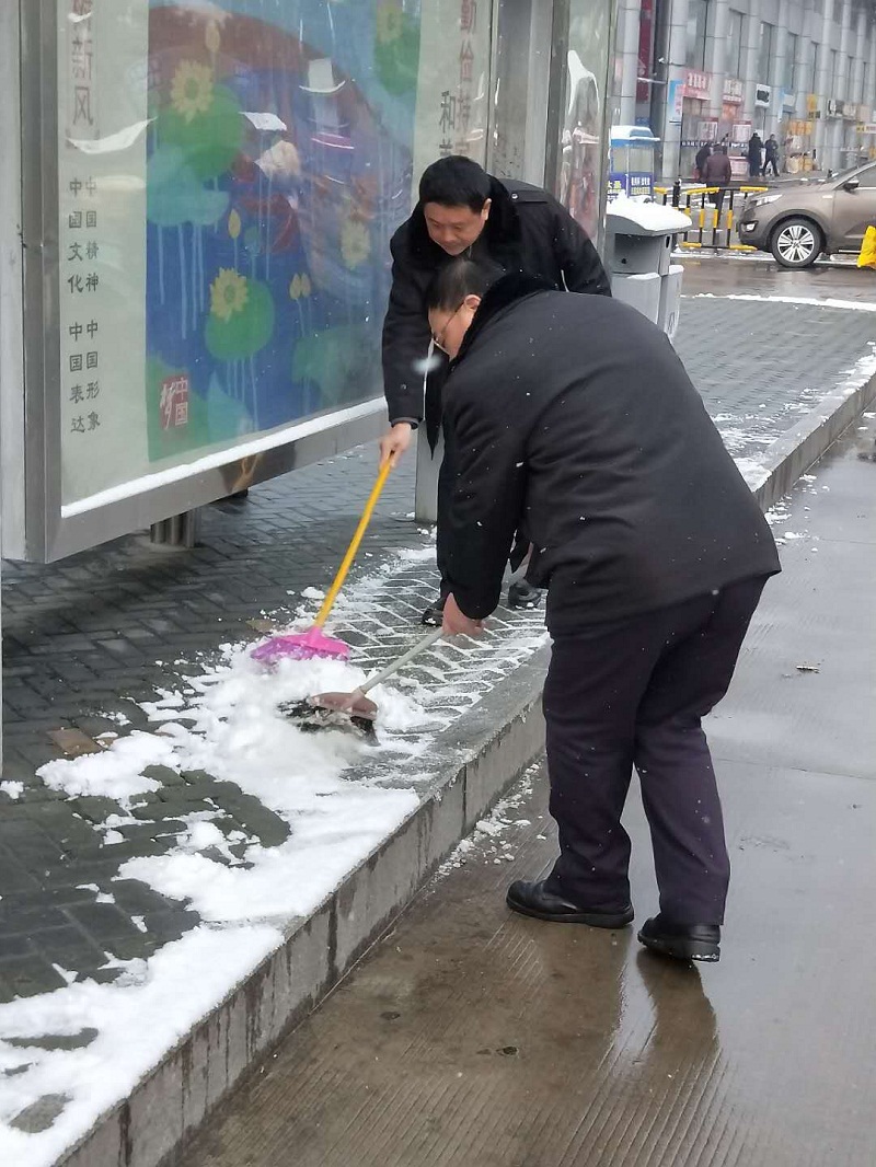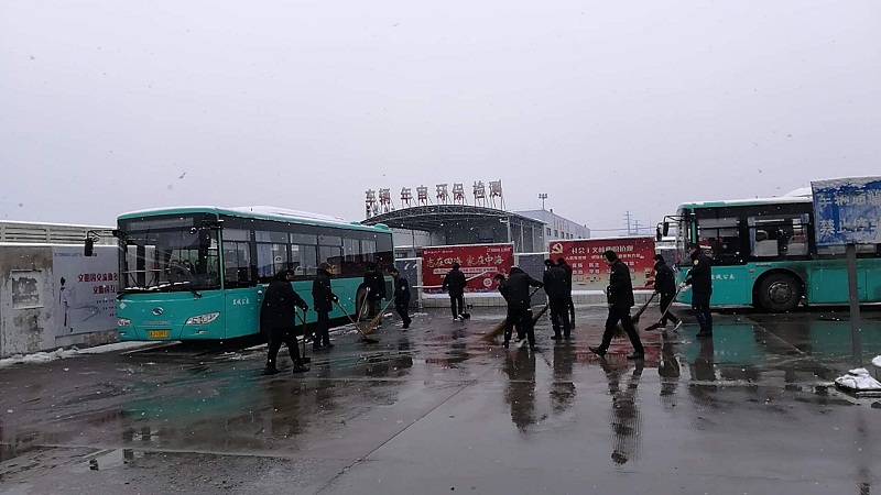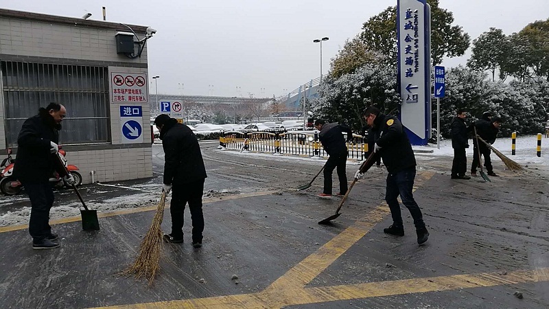 有的場站坡度大,路面濕滑,工作人員不間斷清掃積雪