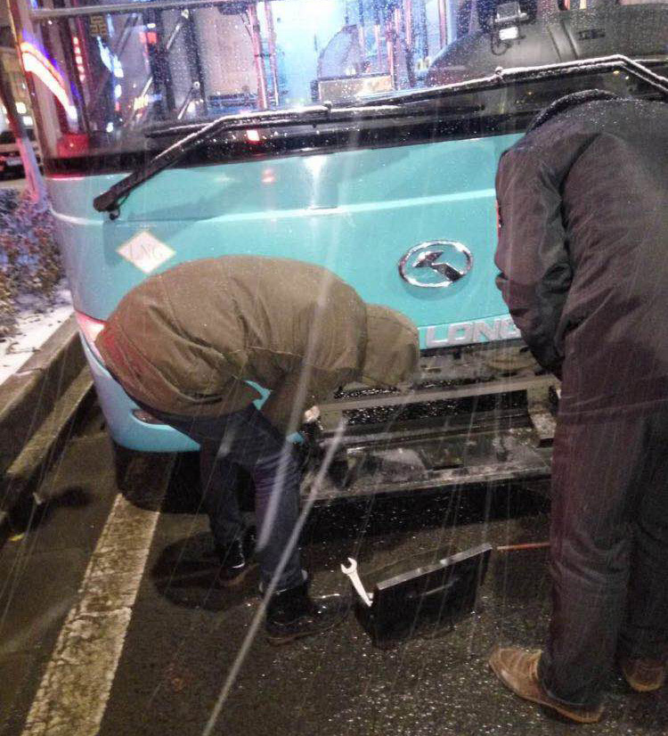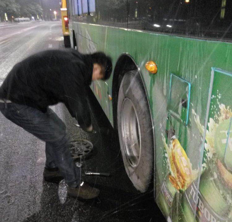 因為天氣原因,車輛維修率比平時增加20%左右,公交修理公司加班加點,一接到通知以最快的速度和效率確保車輛維修到位。僅27號一天共派出修理工120多人次,維修車輛56臺次,為安全營運保駕護航。我們在這里------
