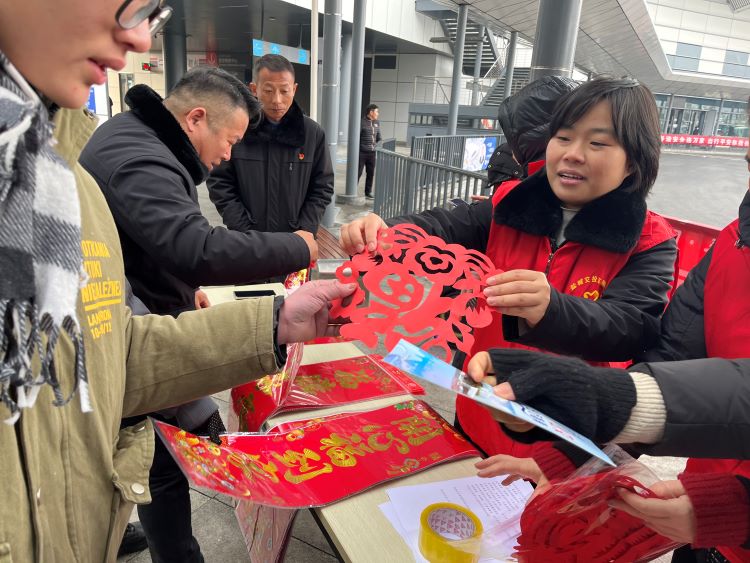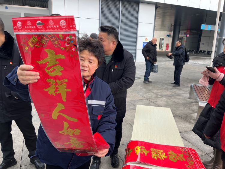 送您一張福字,祝您新春快樂(lè)!志愿者們還特意為乘客準(zhǔn)備了手剪的窗花、新春、對(duì)聯(lián)等,為廣大市民乘客送上乘車驚喜,王女士收到對(duì)聯(lián)和祝福,臉上都洋溢著幸福的笑容。其他乘客見(jiàn)狀,也紛紛上前來(lái)挑選,開(kāi)開(kāi)心心將幸福吉祥帶回家,現(xiàn)場(chǎng)氣氛熱烈,好不熱鬧,喜迎新春佳節(jié)的儀式感和氛圍感瞬間被拉滿同時(shí),分公司廣大干部職工積極為市民乘客提供導(dǎo)乘咨詢服務(wù),并收集群眾的意見(jiàn)和建議,加以分析研究,為廣大市民乘客送、送服務(wù)。