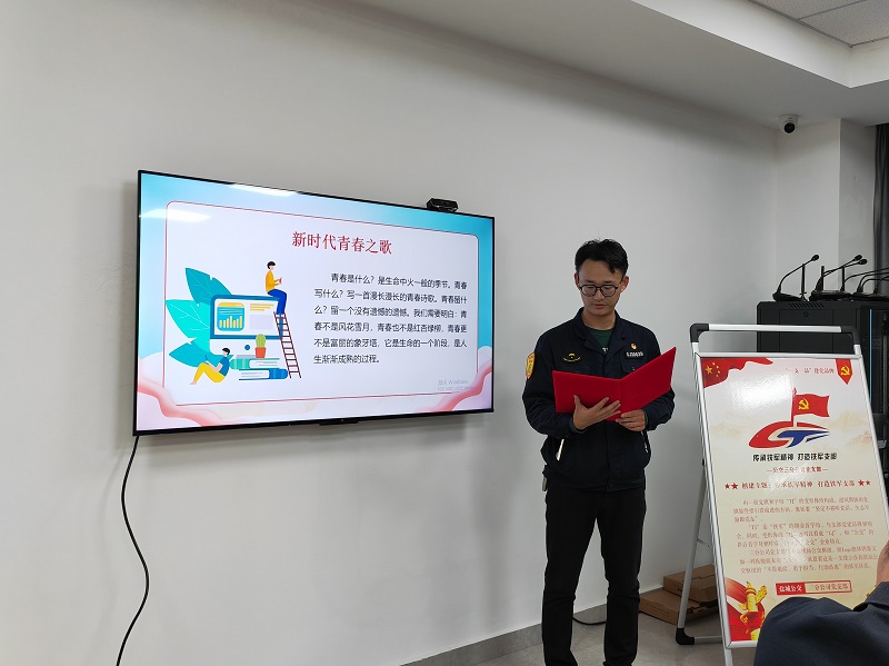 “青春是什么?是生命中火一般的季節(jié)。青春寫什么?寫一首漫長漫長的青春詩歌……”“新時代的青年敢于擔當,自信自強……”團員青年代表李江廈、潘嘉誠飽含深情地朗誦《新時代青春之歌》和《新時代  新青年》,展示了新時代青年人的青春風采與追夢情懷。