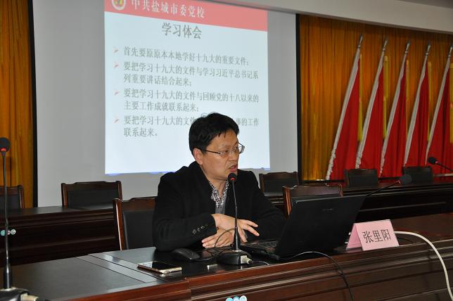 3月20日下午,鹽城公交總公司邀請了中共鹽城市委黨校黨史黨建室主任張里陽副教授為我市司黨員干部職工上了一堂以“十九大精神和新黨章”為主題的專題黨課。公司黨委班子成員、機(jī)關(guān)全體黨員及分公司部分黨員代表參與了學(xué)習(xí)。