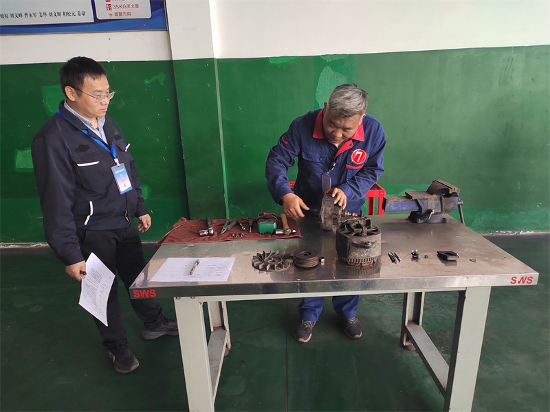 通過對(duì)發(fā)電機(jī)故障零部件的判斷、發(fā)電機(jī)拆卸安裝的步驟、注意事項(xiàng)的評(píng)定,了解維保人員的業(yè)務(wù)操作水平,考察了維修人員對(duì)維修工作流程的細(xì)節(jié)及安全事項(xiàng),參賽人員都順利地完成了比賽項(xiàng)目。
