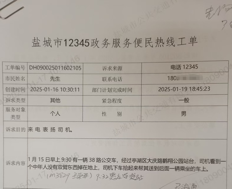 1月15日9點(diǎn)30分左右,38路公交車駕駛員王榮軍在鶴翔公園站?繒r(shí),迎面走來一位失去雙臂的殘疾人,為了趕公交他不慎將肩膀上掛著的包裹掉落在地。王師傅見此情形,迅速離開駕駛室,主動(dòng)上前幫助這位市民撿起掉落的包裹,并主動(dòng)詢問所要乘坐的公交線路。得知正好是此時(shí)進(jìn)站的19路公交車,于是便幫他將包裹直接送到19路車上后,才安心返回38路繼續(xù)執(zhí)行營運(yùn)任務(wù)。這一溫馨的畫面深深打動(dòng)了在場的乘客,一位熱心市民隨后撥打12345電話對王師傅的善舉進(jìn)行了表揚(yáng)。