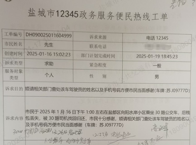 1月16日13點(diǎn)30左右,市民蒯先生乘坐30路公交車前往三河家園站。下車時(shí),不慎將黑色錢包掉落到車廂地板上。錢包恰巧被剛上車的乘客發(fā)現(xiàn)并交給駕駛員高漢軍。高師傅到達(dá)終點(diǎn)站后,第一時(shí)間跟公司后臺(tái)報(bào)備,并妥善保管好錢包。蒯先生在得知自己的錢包丟失后,立即乘車前來找尋。面對失而復(fù)得的錢包,且包里一千多現(xiàn)金以及各類證件、銀行卡無一丟失。蒯先生對高師傅及公交公司表達(dá)了由衷的感謝和贊賞。