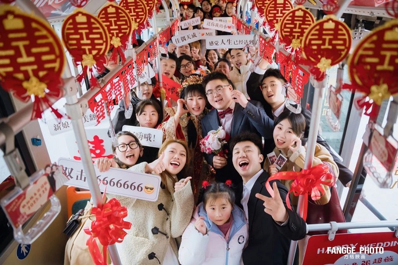 “我喜歡熱鬧,有很多同學(xué)和朋友專程從外地趕來(lái)參加我的婚禮,定制一輛公交婚車,就是希望和他們一起分享我最幸福的喜悅”。