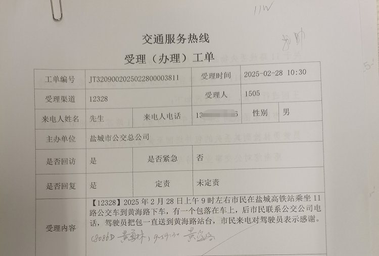 28日上午9時,一位市民在鹽城高鐵站乘坐11路公交車前往黃海路,不慎將背包遺落在車上。發(fā)現(xiàn)背包遺失后,該市民迅速聯(lián)系公交公司尋求幫助。