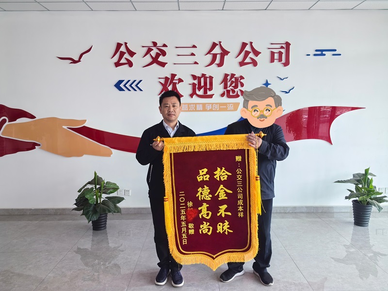 “我今天是專程來(lái)感謝55路成師傅的!”5月6日上午,市民徐老先生將一面印有“拾金不昧 品德高尚”字樣的錦旗送到三分公司工作人員手中,以此表達(dá)對(duì)55路駕駛員成本祥幫其找回遺失挎包的誠(chéng)摯感謝。
