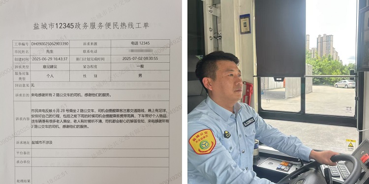 這樣的溫情故事在鹽城公交各條線路上頻頻涌現(xiàn)。7月6日,K12路駕駛員丁永春撿到乘客遺落在車廂上的萬余元現(xiàn)金,急尋失主終完璧歸趙,獲失主贈(zèng)錦旗致謝;在鹽城vs鎮(zhèn)江蘇超足球賽當(dāng)天,2路公交車駕駛員朱偉國細(xì)心服務(wù)贏得了乘客肯定,市民劉先生在表揚(yáng)工單中寫道:“感謝所有2路公交車的司機(jī),感謝他們的服務(wù)!”7月1日,B支2線駕駛員趙愛林營運(yùn)途中發(fā)現(xiàn)一位老人暈倒在滾燙的站臺(tái)上,他迅速撥打120和110求助,并全程溫情守護(hù),直至120救護(hù)車和民警趕到,老人被安全送醫(yī)后,他才放心繼續(xù)運(yùn)營……