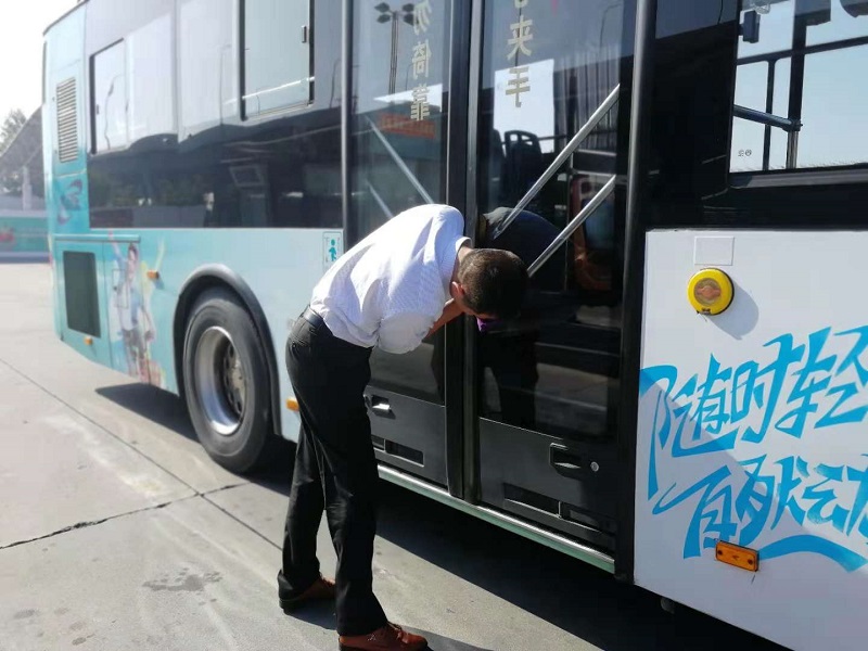 10月6日早晨5點40分左右,公交3路線駕駛員唐海軍早早來到范公路公交停車場,著手準(zhǔn)備一天的工作!肮3路線早班車發(fā)車時間為6:00,晚班車時間為18:30,由五星客運站發(fā)往龍岡黃莊,全程26公里,每天要開5個來回!碧坪\娬f,由于家里距離停車場較遠(yuǎn),而且還要把車從停車場開到五星客運站發(fā)車,他每天早上5點就要出門,晚上回到家已是8點多。