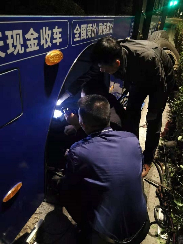搶修人員到達(dá)現(xiàn)場(chǎng)后檢查發(fā)現(xiàn),該車(chē)輛的右后輪咬死是出現(xiàn)異響的主要原因,需將車(chē)拖回公司進(jìn)行場(chǎng)地修理。卻因后輪咬死,無(wú)法進(jìn)行清拖,經(jīng)現(xiàn)場(chǎng)搶修組再次檢查后決定進(jìn)行現(xiàn)場(chǎng)搶修作業(yè)。