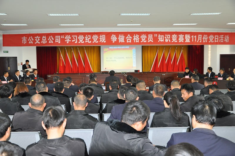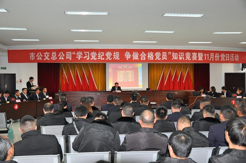 為推進(jìn)“兩學(xué)一做”學(xué)習(xí)教育常態(tài)化制度化,豐富黨員學(xué)習(xí)形式,提升黨員學(xué)習(xí)成效,11月23日下午,鹽城市公共交通總公司舉辦了“學(xué)習(xí)黨紀(jì)黨規(guī) 爭做合格黨員”知識競賽暨11月份黨日活動,各黨支部組成的5支參賽隊伍15名選手參賽,并進(jìn)行了激烈角逐。