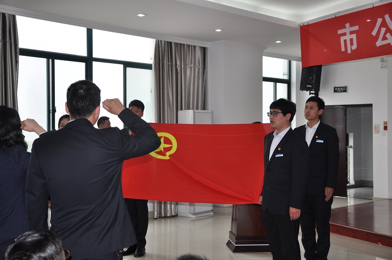 活動(dòng)在革命歌曲《紅旗頌》中拉開序幕,四名護(hù)旗手在歌聲中將黨旗護(hù)送進(jìn)會(huì)場(chǎng),唐晶晶等5名同志在一分公司黨支部書記袁登譽(yù)的帶領(lǐng)下面向黨旗莊嚴(yán)宣誓,“我志愿加入中國(guó)共產(chǎn)黨,擁護(hù)黨的綱領(lǐng),遵守黨的章程,履行黨員義務(wù)......”擲地有聲的誓言,是他們向黨和人民作出的鄭重承諾。