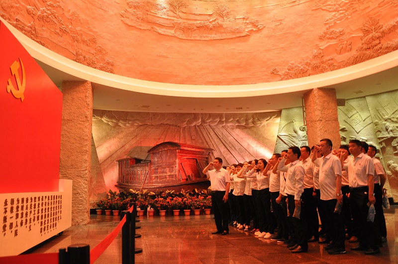 在浙江嘉興南湖革命紀念館,全體黨員站在誓言墻前,面對黨旗重溫了入黨誓詞,不忘初心、牢記使命。隨后,大家懷著崇敬之心參觀了紀念館,重溫了1840年鴉片戰(zhàn)爭以來無數(shù)仁人志士為尋求救國救民的道路而不斷探索、抗爭以及中國工人階級的壯大、馬克思主義在中國的傳播、共產(chǎn)主義小組的建立直至中國共產(chǎn)黨成立的歷史。一件件珍貴的文物、一張張承載著記憶的照片,深深震撼著每位黨員的心靈,黨員們深切感受到了革命先烈彰顯的“開天辟地、敢為人先;堅定理想、百折不撓;立黨為公、忠誠為民”的“紅船精神”。