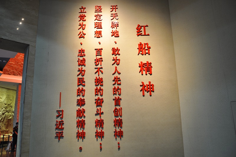 在南湖湖心島堤岸旁,大家參觀了中國共產(chǎn)黨誕生地之一—南湖紅船。1921年7月,中國共產(chǎn)黨第一次代表大會因受法租界巡捕干擾,被迫從上海轉(zhuǎn)移到嘉興南湖,繼續(xù)會議議程。習近平總書記曾經(jīng)指出:“上海黨的一大會址、嘉興南湖紅船是我們黨夢想起航的地方。我們黨從這里誕生,從這里出征,從這里走向全國執(zhí)政。這里是我們黨的脈。”紅船是中國革命的精神之源,它所承載的“紅船精神”昭示了中國共產(chǎn)黨人的初心和使命,推動中國共產(chǎn)黨人克服各種艱難險阻取得一系列令世人矚目的偉大成就。