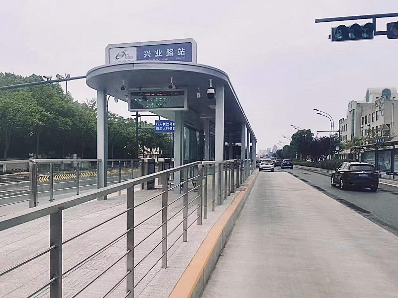 新站臺(tái)均為無(wú)人值守站臺(tái),未設(shè)置閘機(jī)和自助收費(fèi)系統(tǒng),實(shí)行公交車左側(cè)前門上車付費(fèi),后門下車,乘客從左前門上車后,在右手邊投幣、刷卡或掃碼。這不僅降低了公交的運(yùn)營(yíng)成本,還培養(yǎng)了乘客前門上車、后門下車的良好習(xí)慣。站臺(tái)都安裝人臉識(shí)別攝像機(jī)、站臺(tái)內(nèi)部的無(wú)死角監(jiān)控、智能語(yǔ)音播報(bào),在站臺(tái)的電子屏幕上面顯示經(jīng)過(guò)該站臺(tái)的車輛運(yùn)行情況和即將到站的車輛信息,市民可以通過(guò)觸摸的方式來(lái)進(jìn)行觸屏操作,查看想要選擇的車輛信息和車輛運(yùn)行情況。新建BRT站臺(tái)都有換乘指示圖、行經(jīng)線路的地標(biāo)圖、行經(jīng)線路的線路走向圖,市民可通過(guò)示意圖查詢所需乘坐線路。雖然站臺(tái)是開(kāi)放式無(wú)人值守,但服務(wù)依然妥妥貼心。