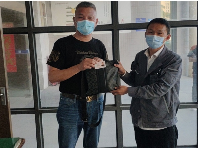 當(dāng)天下午17:40左右,劉先生跟著倪師傅的車來到城南回車場,順利從陳濤師傅手上領(lǐng)回丟失的挎包,“太感謝陳師傅和倪師傅了,沒有他們的熱心幫助,我不可能這么順利找回挎包!