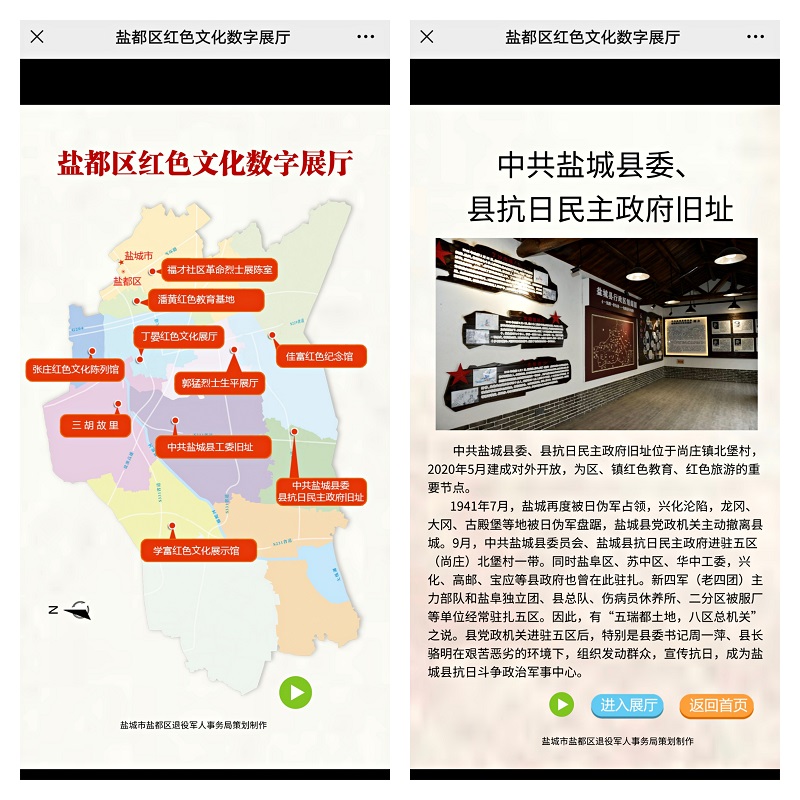 工作之余,打開手機(jī)掃碼,輕輕一點(diǎn)便進(jìn)入了采用全景720°拍攝,融合三維全景虛擬導(dǎo)覽技術(shù),集合視頻、語音、圖文等多種新媒體展示形式的“鹽都區(qū)紅色文化數(shù)字展廳”。通過云上參觀方式,讓黨員足不出戶接受黨史教育,堅(jiān)定弘揚(yáng)偉大建黨精神,以奮斗姿態(tài)篤定前行的勇氣和信心。