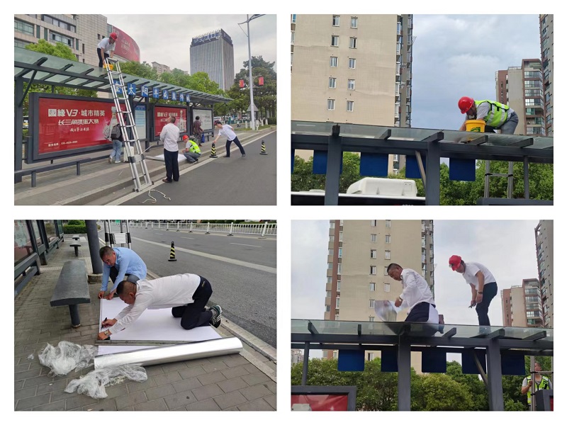 為把好事辦實(shí)、把實(shí)事辦好,順利推進(jìn)公交候車亭頂棚加裝遮陽設(shè)施工作,前期,市公交服務(wù)公司場站維修隊(duì)精心選擇三種遮陽材料進(jìn)行測試,經(jīng)對比,選擇了重量輕、成本低、效果佳、顏值高的錫紙貼,有效緩解了市民在炎炎夏日下候乘的酷熱問題。