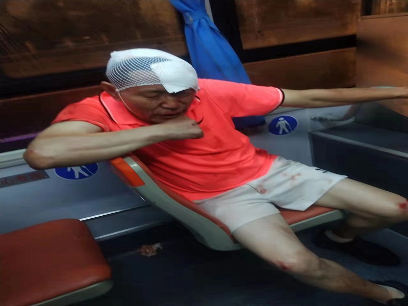 吳師傅和劉師傅在檢查傷情時(shí)發(fā)現(xiàn),尹先生的小腿和膝蓋多處破皮流血,頭部和臉上也全是血跡。因無(wú)法判斷傷情,為防止二次受傷,未移動(dòng)傷者。后來(lái)有熱心乘客也過(guò)來(lái)幫忙,打傘為傷者遮擋風(fēng)雨。幾分鐘后,尹先生意識(shí)才清醒過(guò)來(lái),因道路上還有其他非機(jī)動(dòng)車通行,吳師傅和劉師傅將傷者小心扶至公交車上后,立即撥打110、120求助并電話告知傷者家屬。