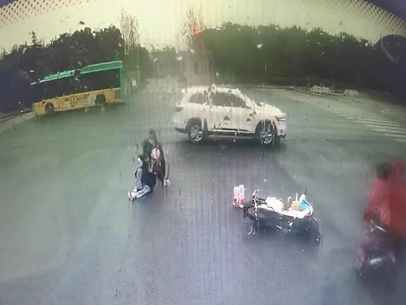 17時左右,一名女子駕駛電動自行車在迎賓館北門路口過紅綠燈時,因下雨路滑,加上車速過快,她一個急剎車后重重摔倒在地,遲遲未能站起來,只能艱難地爬向電動車。此時路上往來的車輛和行人或是繞行,或是觀望,一時竟無人伸出援手。