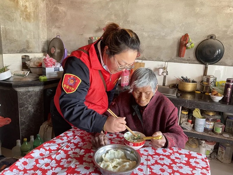 來到老人家中,志愿者們送上米面等生活用品,給老人拖地、打掃屋子,幫助老人干起了農(nóng)活。中午大家圍在桌前,一起洗菜、剁餡、和餡,為老人包起了餃子。