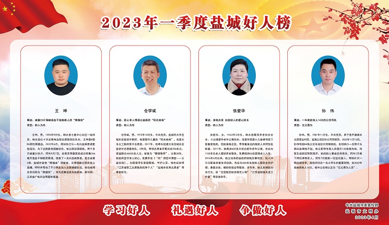 2023年一季度鹽城好人榜