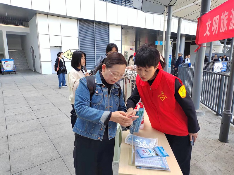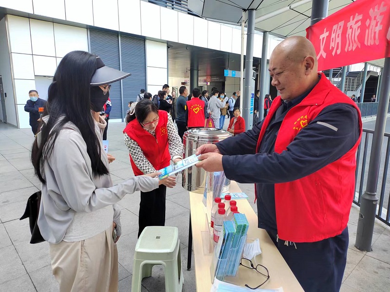 今年是疫情平穩(wěn)轉(zhuǎn)段后文旅市場全面恢復(fù)的重要一年,為進(jìn)一步放大文明旅游宣傳“聲量”,志愿者們通過擺放咨詢臺(tái)、發(fā)放《文明旅游》宣傳折頁等多種形式,向過往旅客詳細(xì)講解《中國公民國內(nèi)旅游文明行為公約》《中國公民出境旅游文明行為指南》等文明出游準(zhǔn)則及文明出行、文明出游等文明旅游常識(shí),倡導(dǎo)大家文明出行、講文明、樹新風(fēng),自覺抵制不文明行為,爭做文明行為的先行者、實(shí)踐者、傳播者和監(jiān)督者,為提升鹽城城市形象、創(chuàng)建全國文明典范城市加油、助力。
