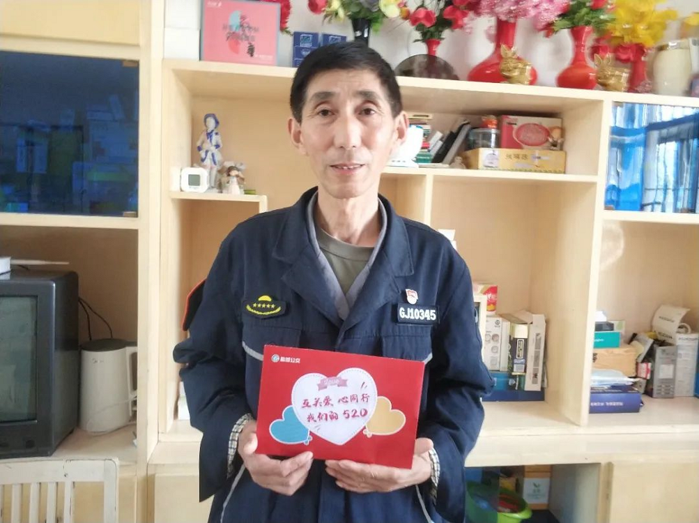 “520”是告白日,也是公交駕駛員關(guān)愛(ài)日。2023年5月20日,公交一分公司駕駛員王鑫向兩位60后駕駛員送出了他的特殊“告白”。