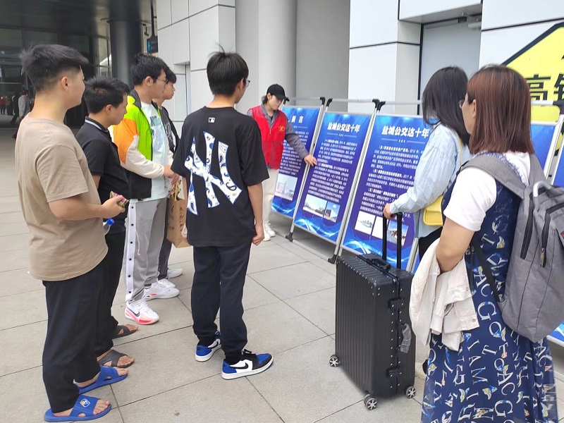 活動現(xiàn)場設(shè)置了《新時代十年的偉大變革》和《鹽城公交十年》宣傳展板,黨員志愿者錢麗從理論創(chuàng)新、黨的領(lǐng)導(dǎo)、戰(zhàn)略部署、脫貧攻堅(jiān)、新發(fā)展理念等十六個方面,對新時代十年黨和國家事業(yè)取得的歷史性成就和歷史性變革作了全面宣講解讀;志愿者薛萍從城鄉(xiāng)公交一體化、一小時免費(fèi)換乘、“實(shí)時公交”應(yīng)用等十二個方面,生動講述了鹽城公交櫛風(fēng)沐雨、砥礪奮進(jìn)的十年發(fā)展歷程。