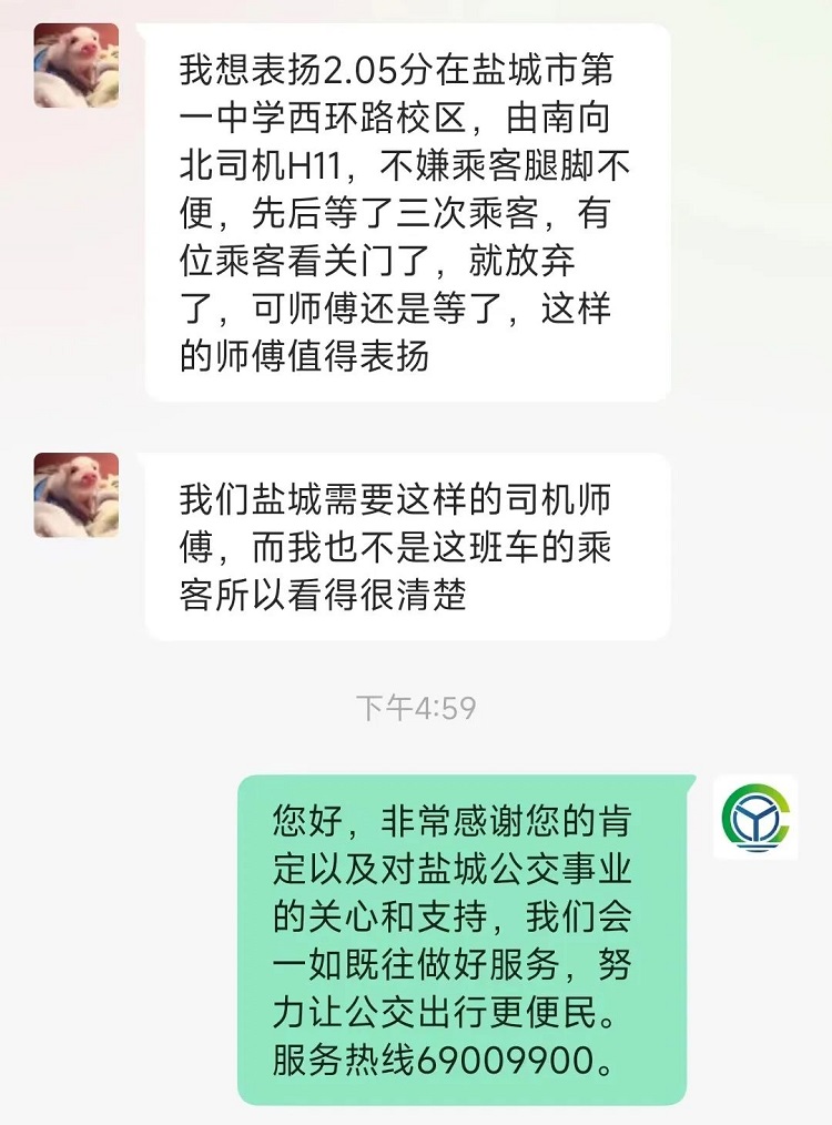 “我們鹽城需要這樣的司機(jī)師傅……”,這是7月21日,一位乘客在鹽城公交微信公眾號(hào)平臺(tái)留言中的一句話。留言雖短,直抵人心!